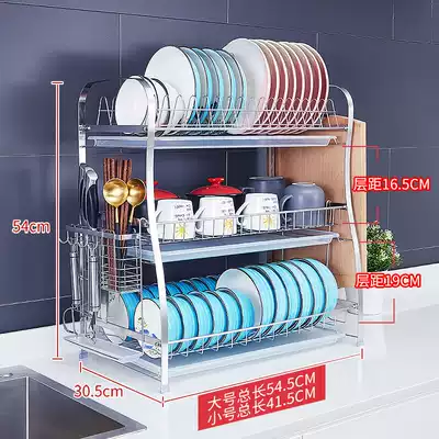 Stainless steel kitchen rack drain bowl rack countertop extra three layer plate drawing water bowl large capacity storage