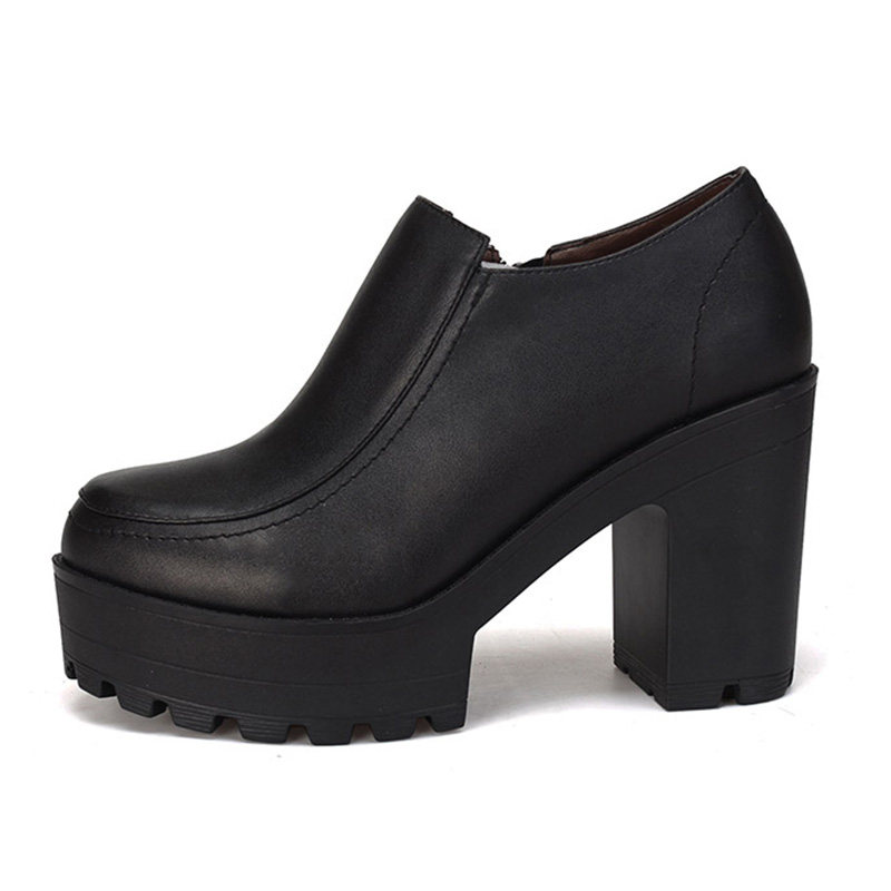 2021 New European and American leather women's shoes deep mouth thick waterproof counter shoes autumn thick heel 33 yard heel shoes
