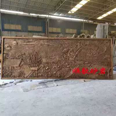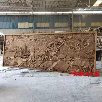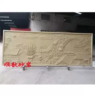 Sandstone three-dimensional European hollow relief background wall Hotel mural Sand Rock glass fiber sculpture Qingming Shanghe map