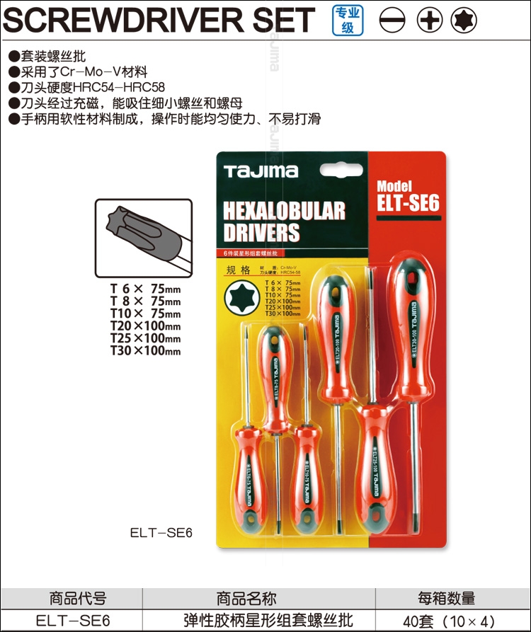 Japan's Tajima star batch screwdriver set rice-shaped screwdriver plum screwdriver set 6 pieces ELTSE6