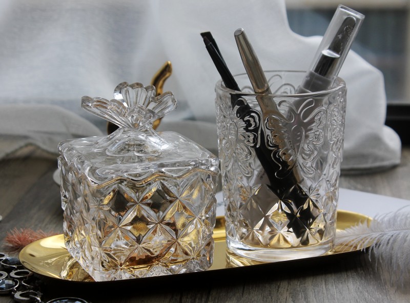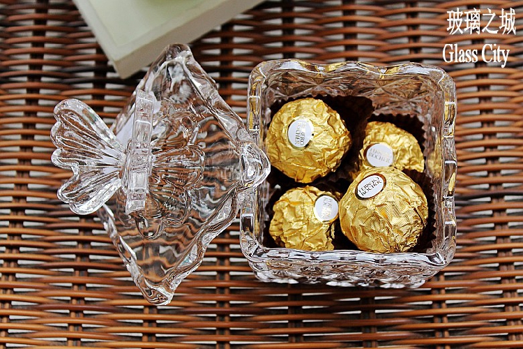 Glass City Personalized crystal glass candy box storage box Jewelry box Makeup cotton box Sugar tank makeup brush holder
