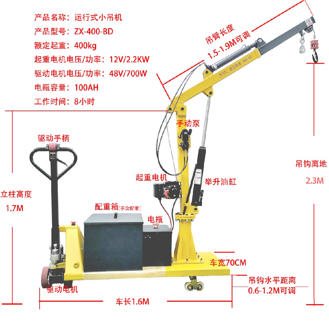Small crane mobile running crane all-electric decoration lifting material crane mold loading and unloading truck factory workshop hanging fixture