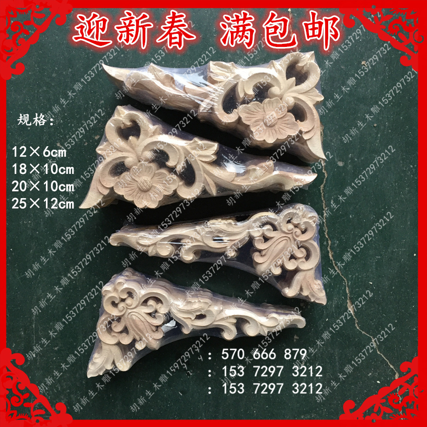 European-style solid wood furniture clothing book overall cabinet door flower decoration background wall small wood decal gun corner flower stigma