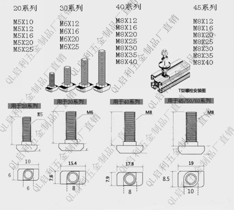 Eurotender Aluminum Milking material accessories T-screws t shaped hammer screws 20 30M8 40 45 Type M5M6M8 * 10-40