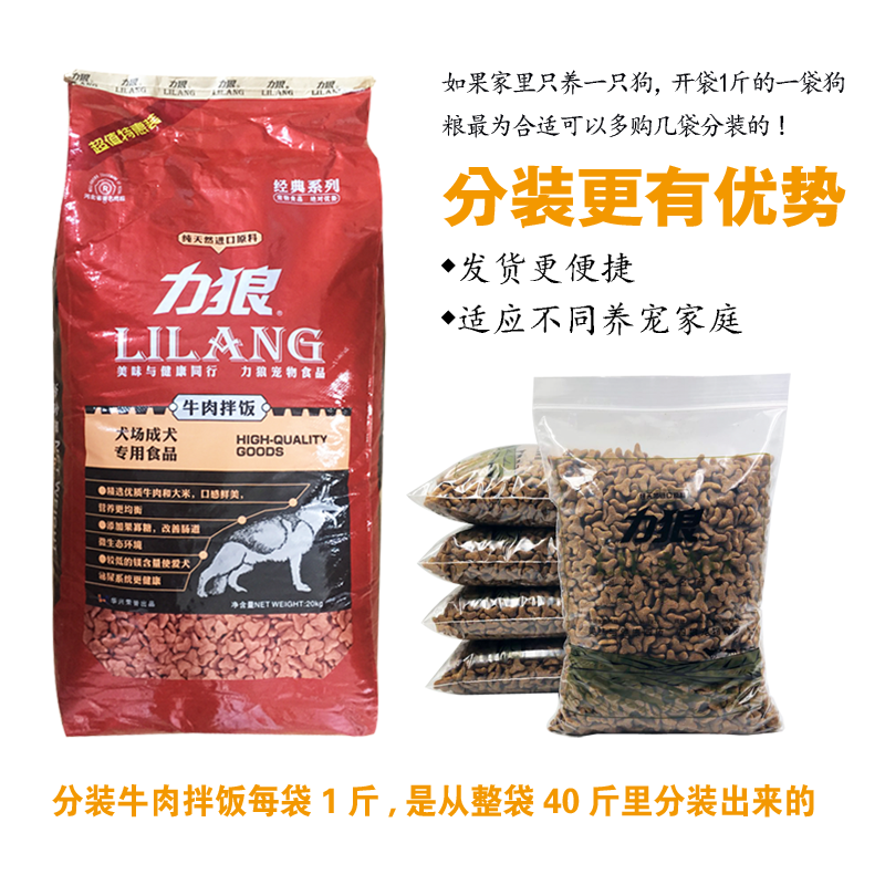 Natural dog food 20kg adult dog golden hair German shepherd teddy dog food adult dog force wolf beef mixed rice 2 5KG