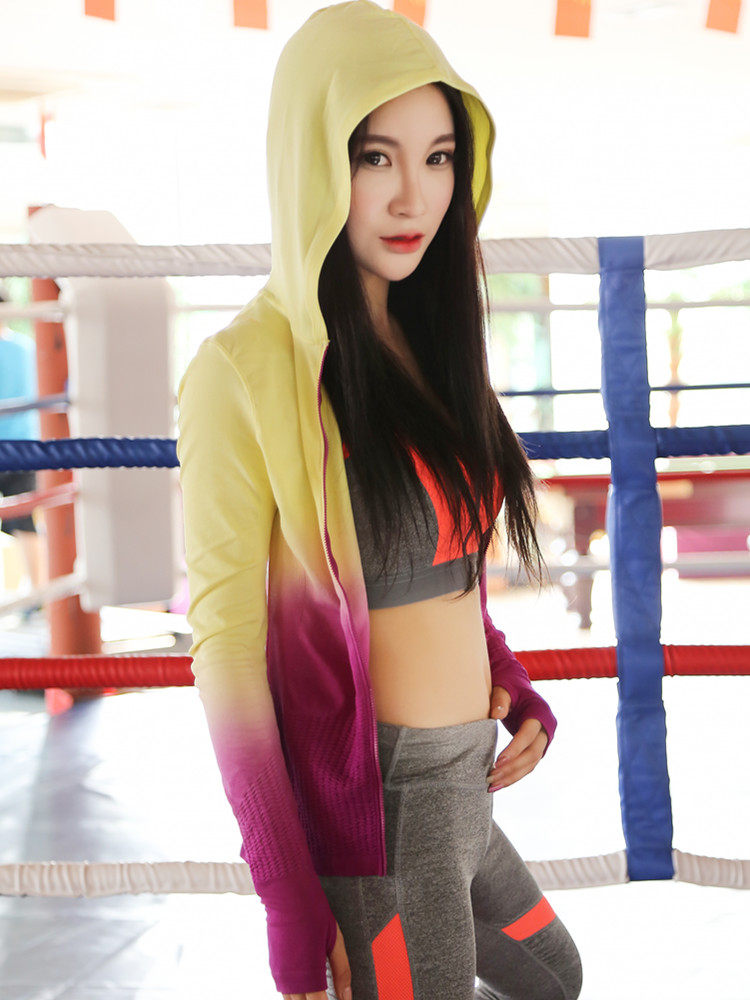 Autumn-style Gradual Layer Color Sports Running Yoga Fitness Speed Dry-to-cap jacket Jacket Jacket Jacket Sweatshirt Longsleeve