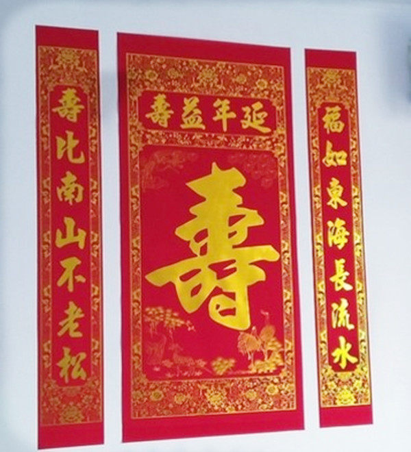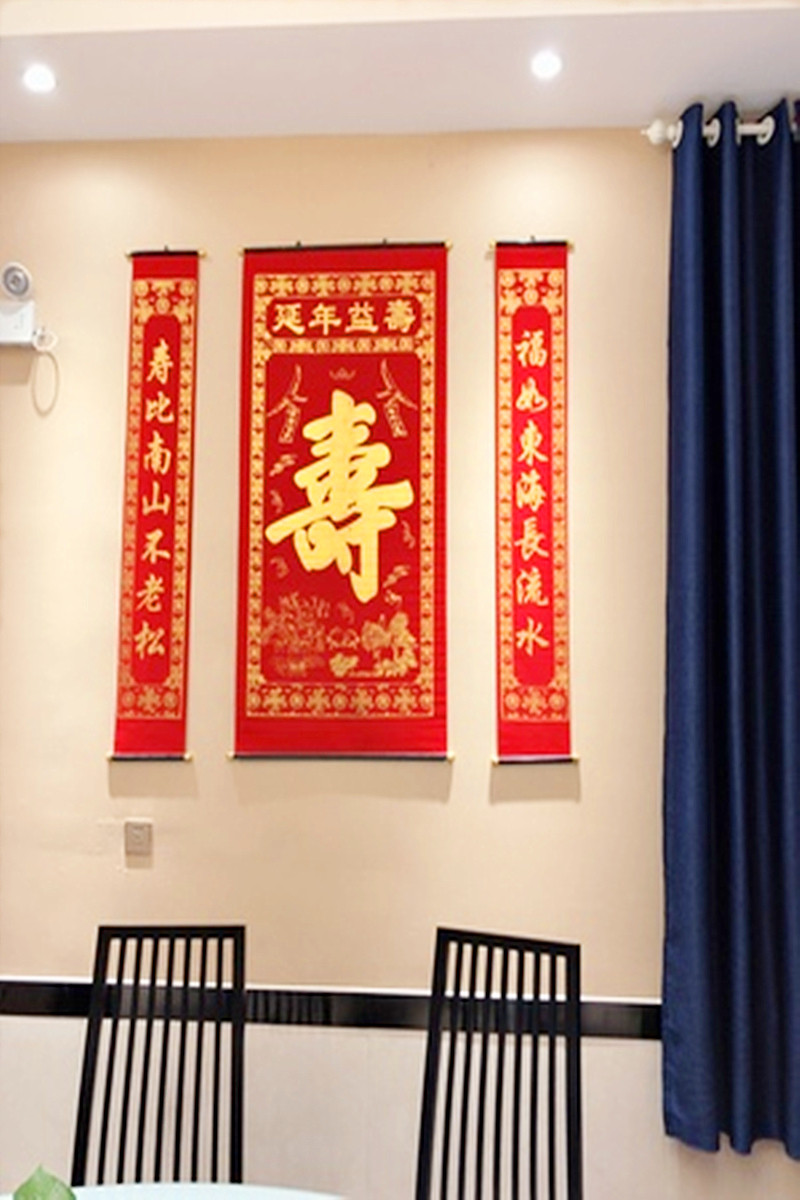 Large 90*75 small 45*40 (2pcs)Zhongtang hanging longevity 3m La Fu single (2pcs) Bai Shou Fu word paste double fish blessing copybook Flower blooming rich festive package 1 Festive package 2 thickening longevity word