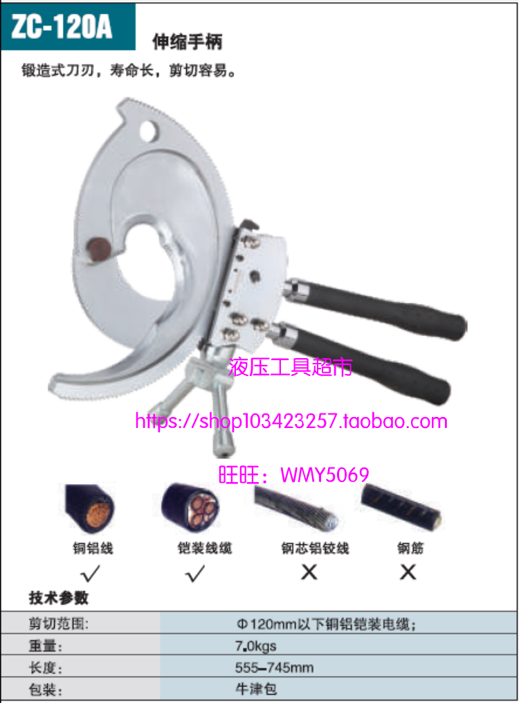 ZUPPER Giant ZC - 120A Ratched Cable Cut Copper and Aluminum Cable Cutting Cable Cutting Break Cut