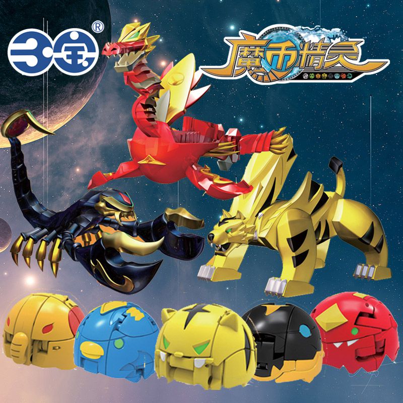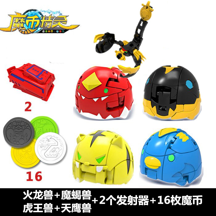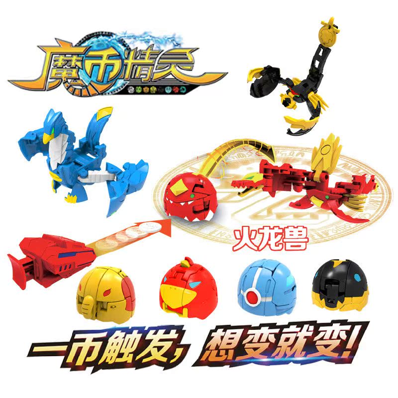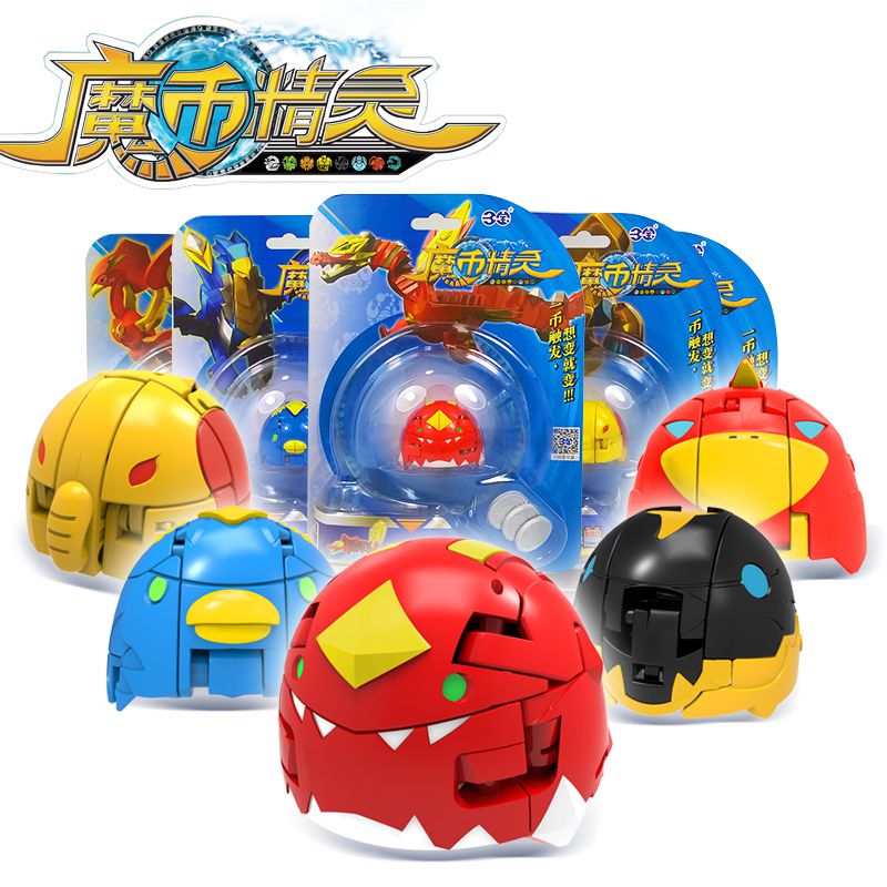 The real Samboy Magic Coin Elves Toys Children's Transformer Set of Dragon Golden Liang Tiger King Beast