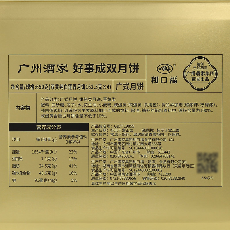 (Production date batch is July)Double Yellow Lotus Seed Paste Mooncake 650g
