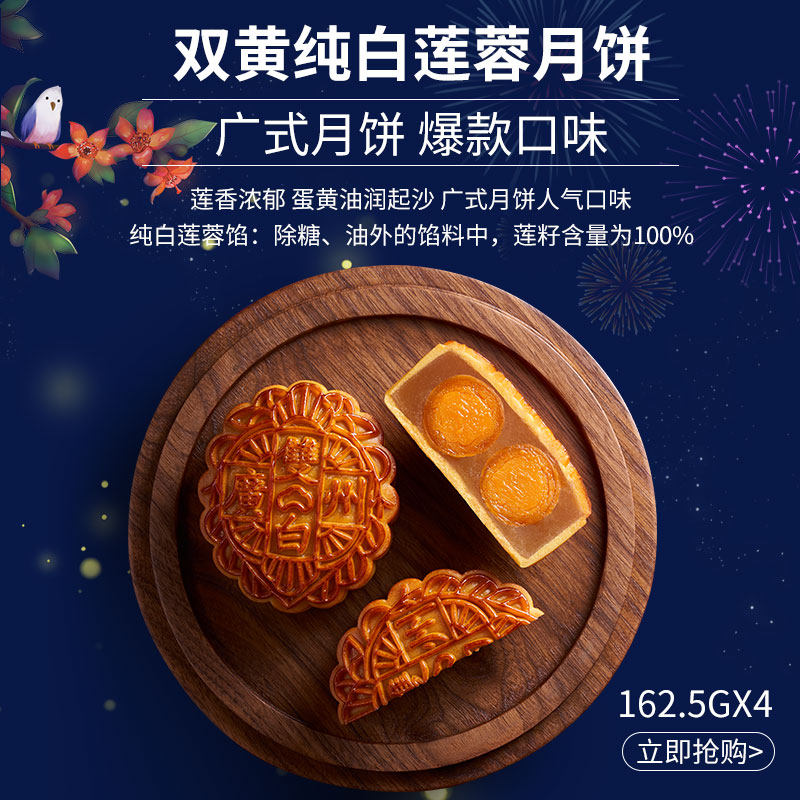Guangzhou Restaurant good thing into double gift box double yellow pure white lotus seed paste mooncake 650g egg yolk Cantonese mooncake holiday gift