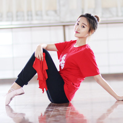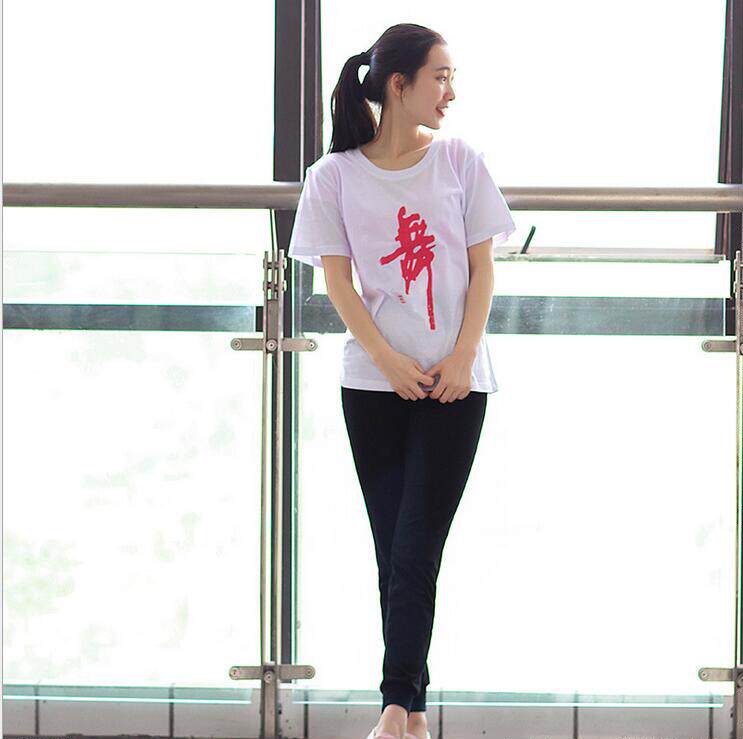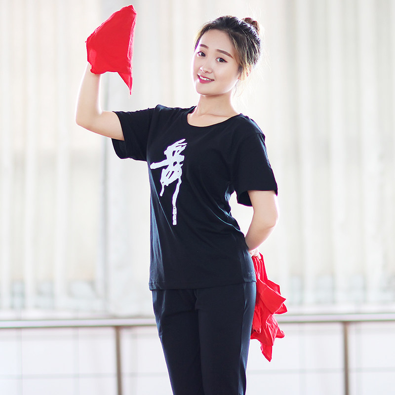 Pure cotton adult short-sleeved dance word cultural shirt bodybuilding round neck dance word T-shirt dance clothes square dance clothing practice clothes