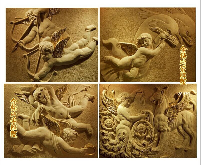 Sandstone Reliefs Angels Sandstone Background Genguan Background Wall Decoration Three-dimensional Painting Figure Sculpted Decoration Mural Painting