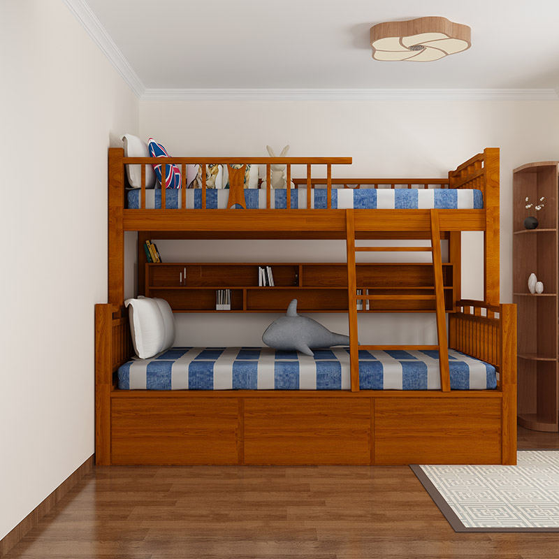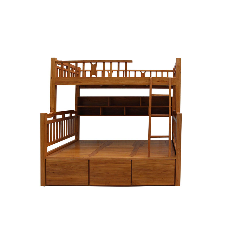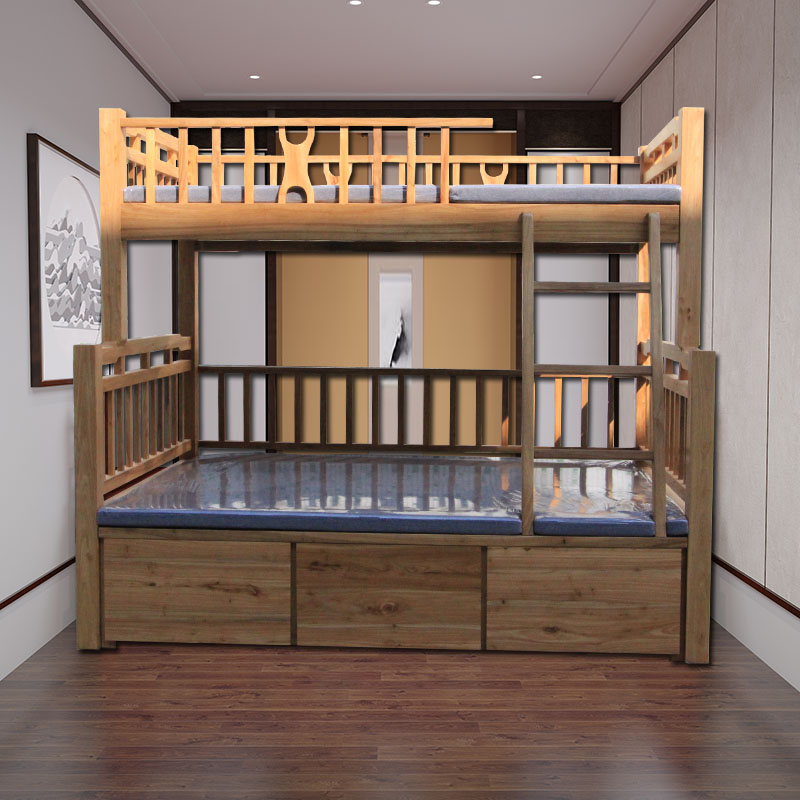 Children full solid wood bed Lower bed Chinese mortise and tenon mortise small household type double bed with multifunction double bed Two bed Two beds