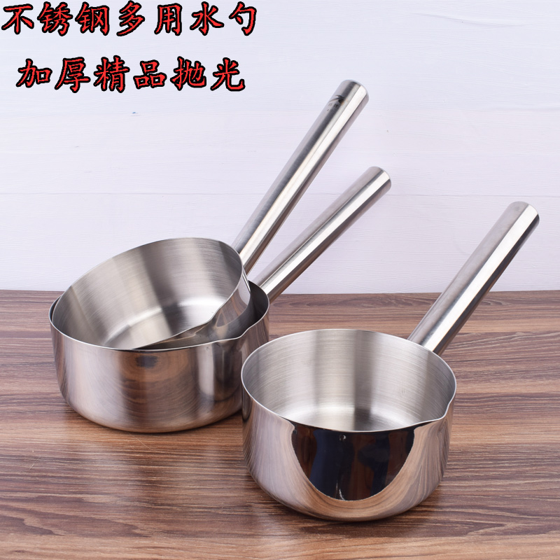 Thickened 304 stainless steel long handle with mouth water shell scoop scoop kitchen canteen scoop water scoop Duck mouth
