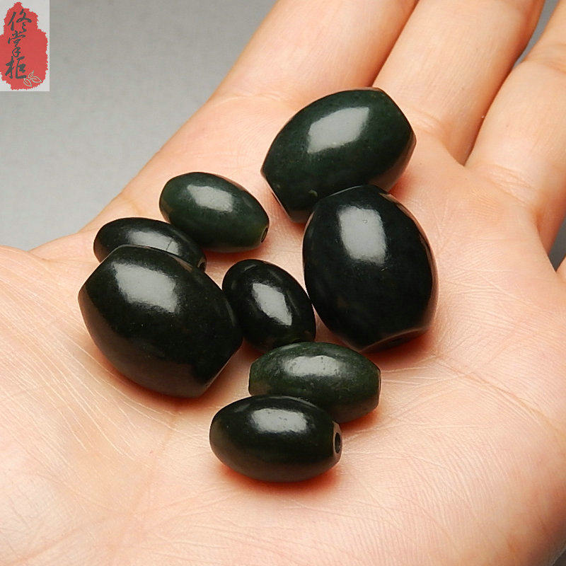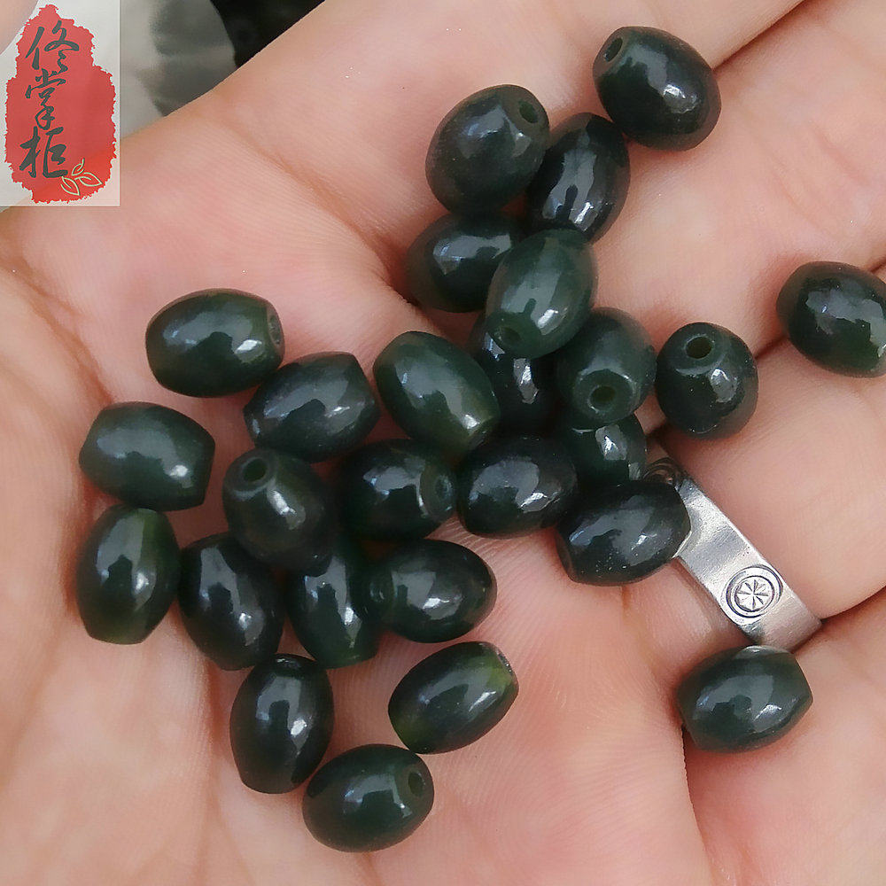 Natural and field jade beads loose bead green jade casket jade Jade Hand Strings Hand-crafted DIY Accessories Accessories
