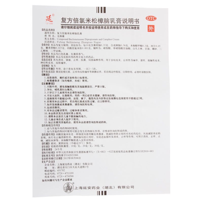 Compound betamethasone camphor cream for the preparation of the product