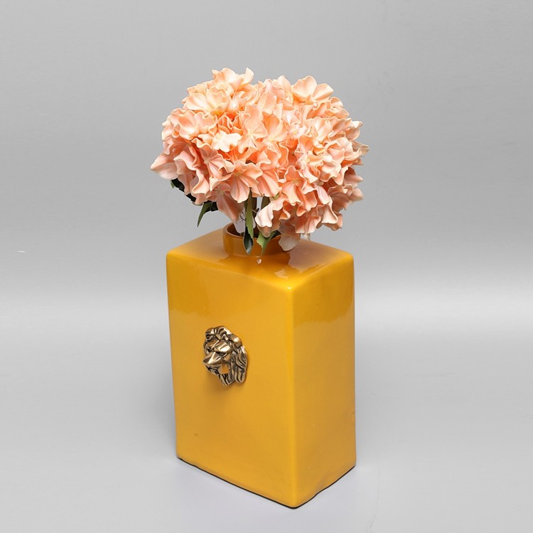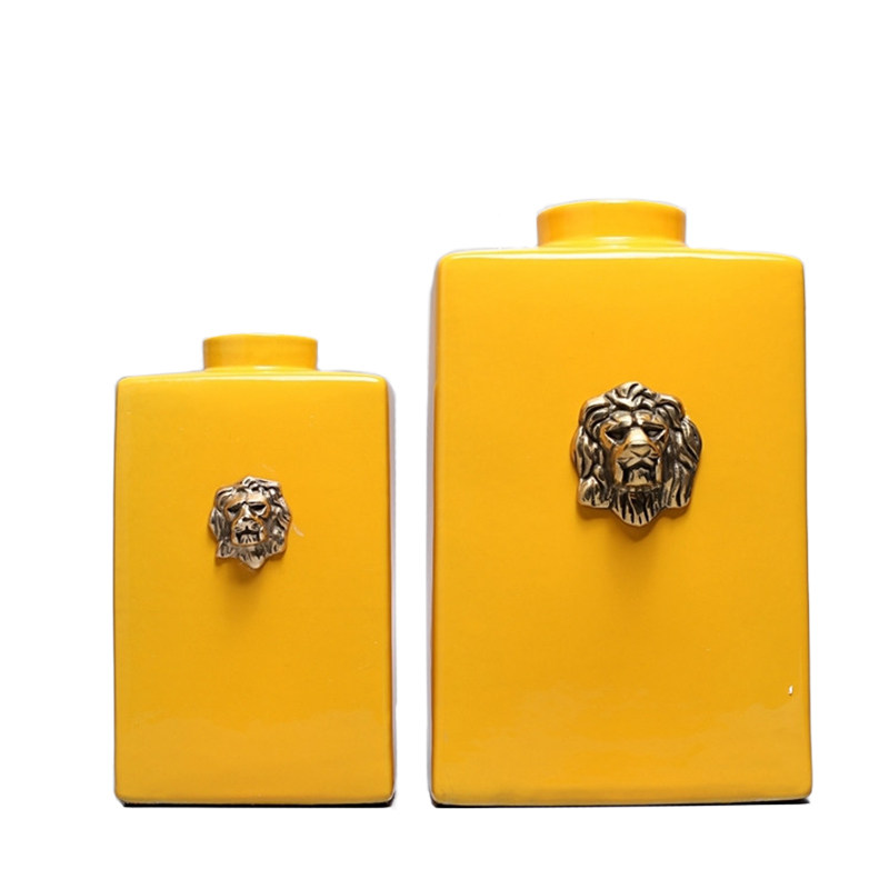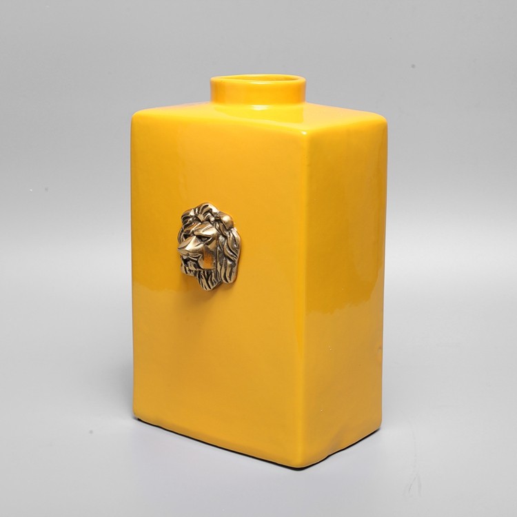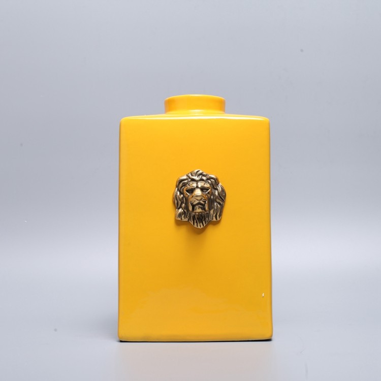 Creative Chinese yellow ceramic jar vase decoration model guest hall wine cabinet Home soft decoration craft gift decoration