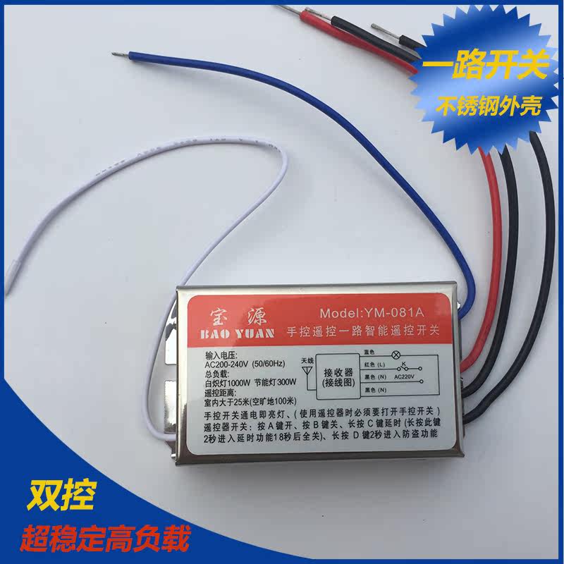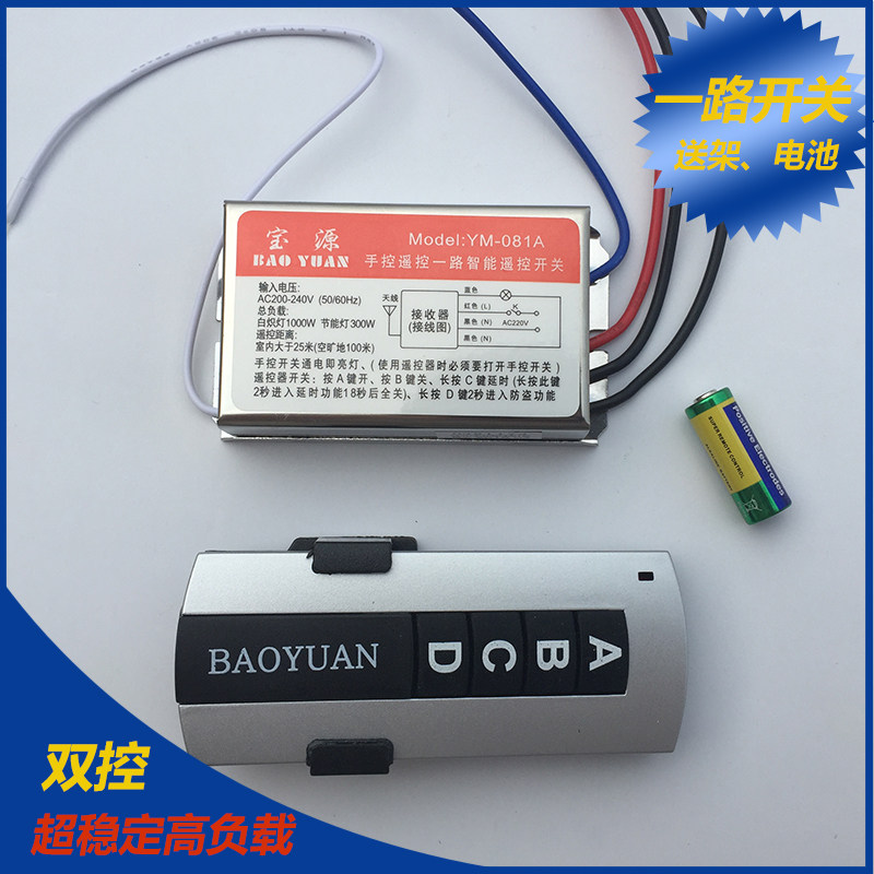 Remote control switch 220V single radio lamp lamps Household intelligent remote control ceiling lamp stable double cut through the wall