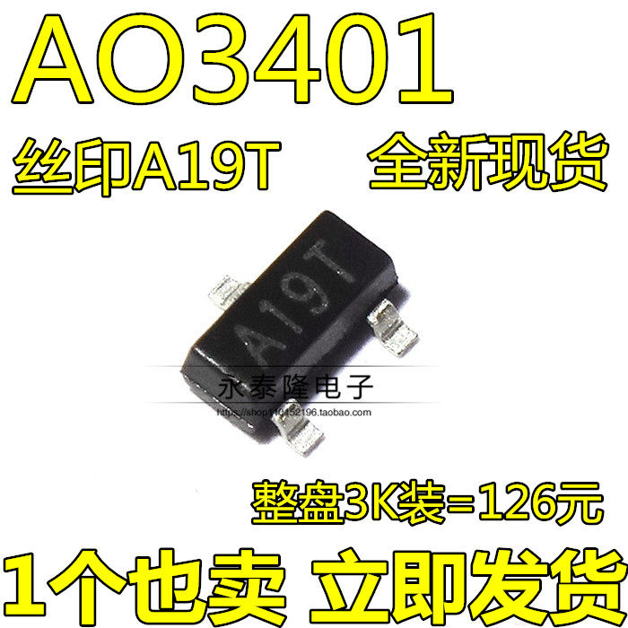 New AO3401 A19T online version printed SOT-23 MOS tube patch field effect electric crystal disc 3K=165 Yuan