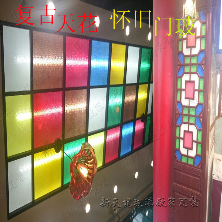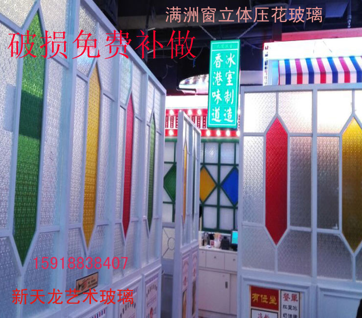 Manchurian window begonia color embossed glass art retro screen partition door and window spray painted tempered glass custom