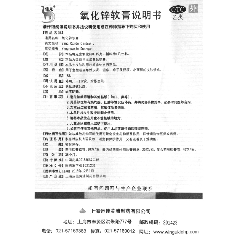Xinlong Zinc Oxide Ointment 20g Acute dermatitis Children Eczema Prickly Skin Ulcer Hitch Hip Care Hip External Cream