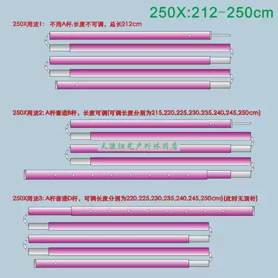 Tarp pole 250X sky curtain rod Purple ultra-light T9 hard material tent upgrade adjustable height