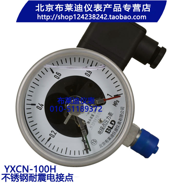 Beijing Brady stainless steel shock resistant electric junction pressure meter YXHN-100 radial meter glass liquid