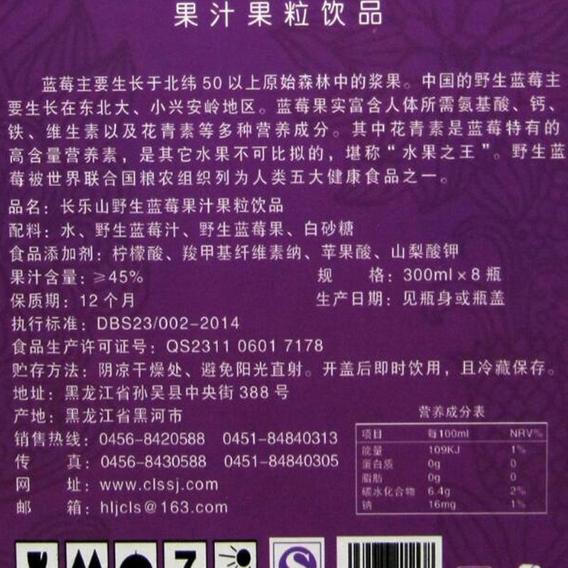 Daxinganling wild blueberry juice blueberry juice drink fruit drink 300gX8 bottles
