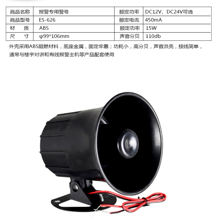 Alarm Host loudspeaker ES-626 alarm No. 12V Whistles Police 110 Decibel Alarm THEFT ALARM ACCESSORIES