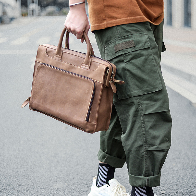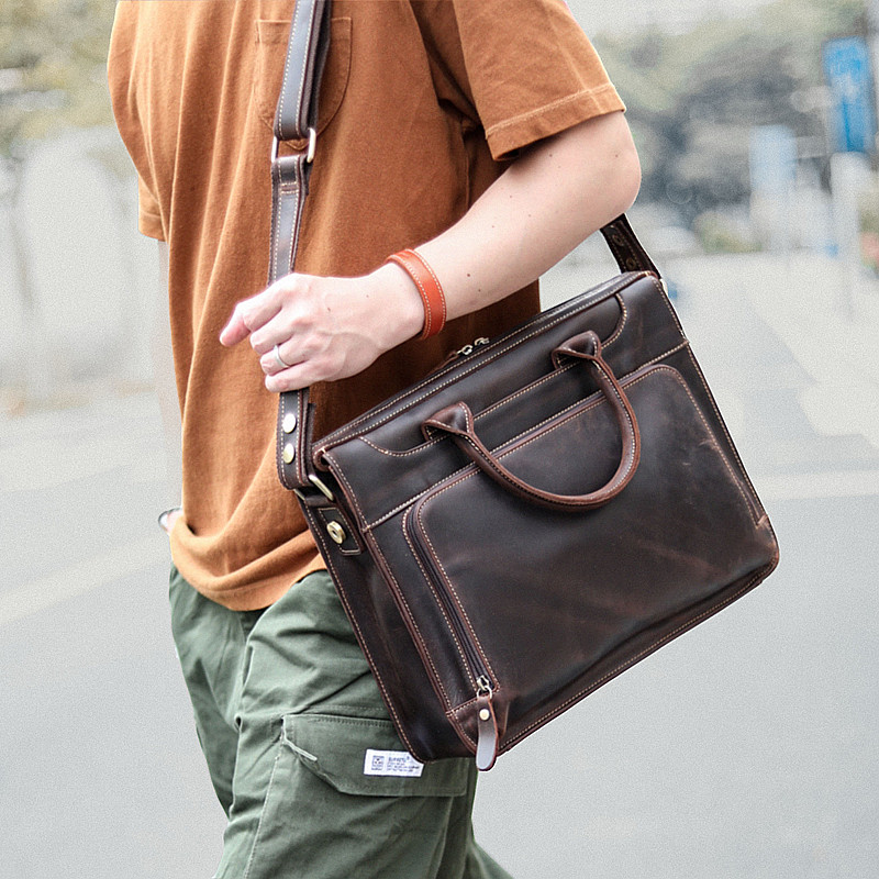 Mad horse retro business handbag leisure single shoulder bag man's skin handbag leather leather leather large capacity