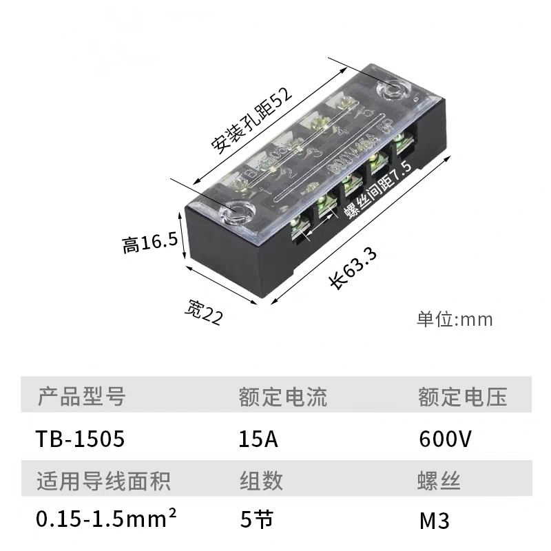 TB-1505 TB1505L Terminal block 15A 600V 5 gang terminal block connector Japanese style terminal block