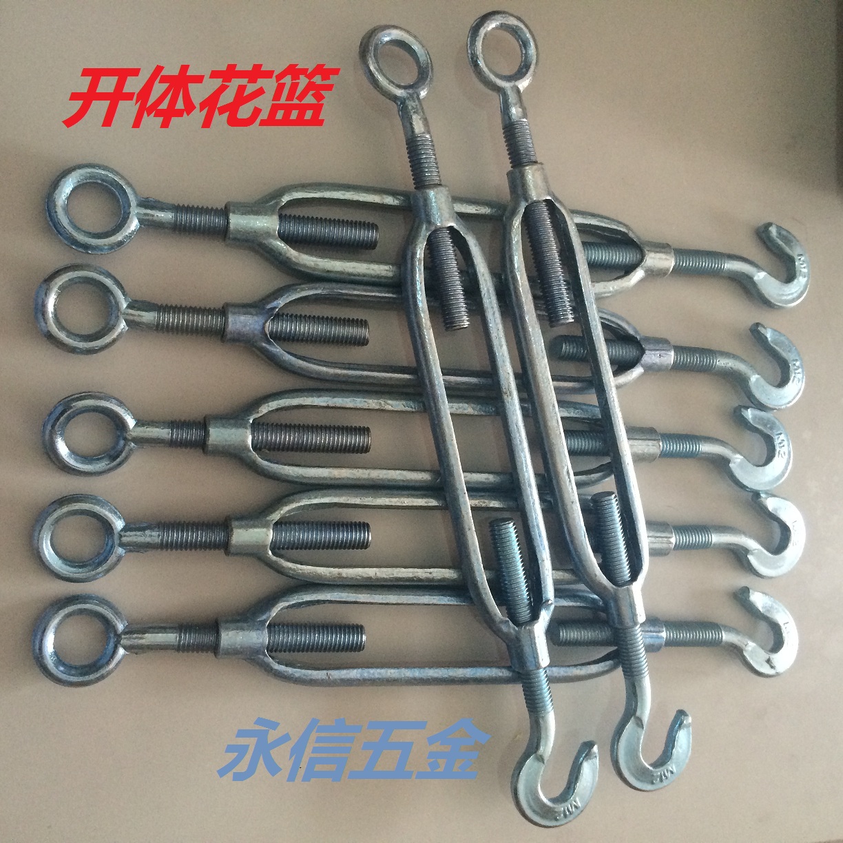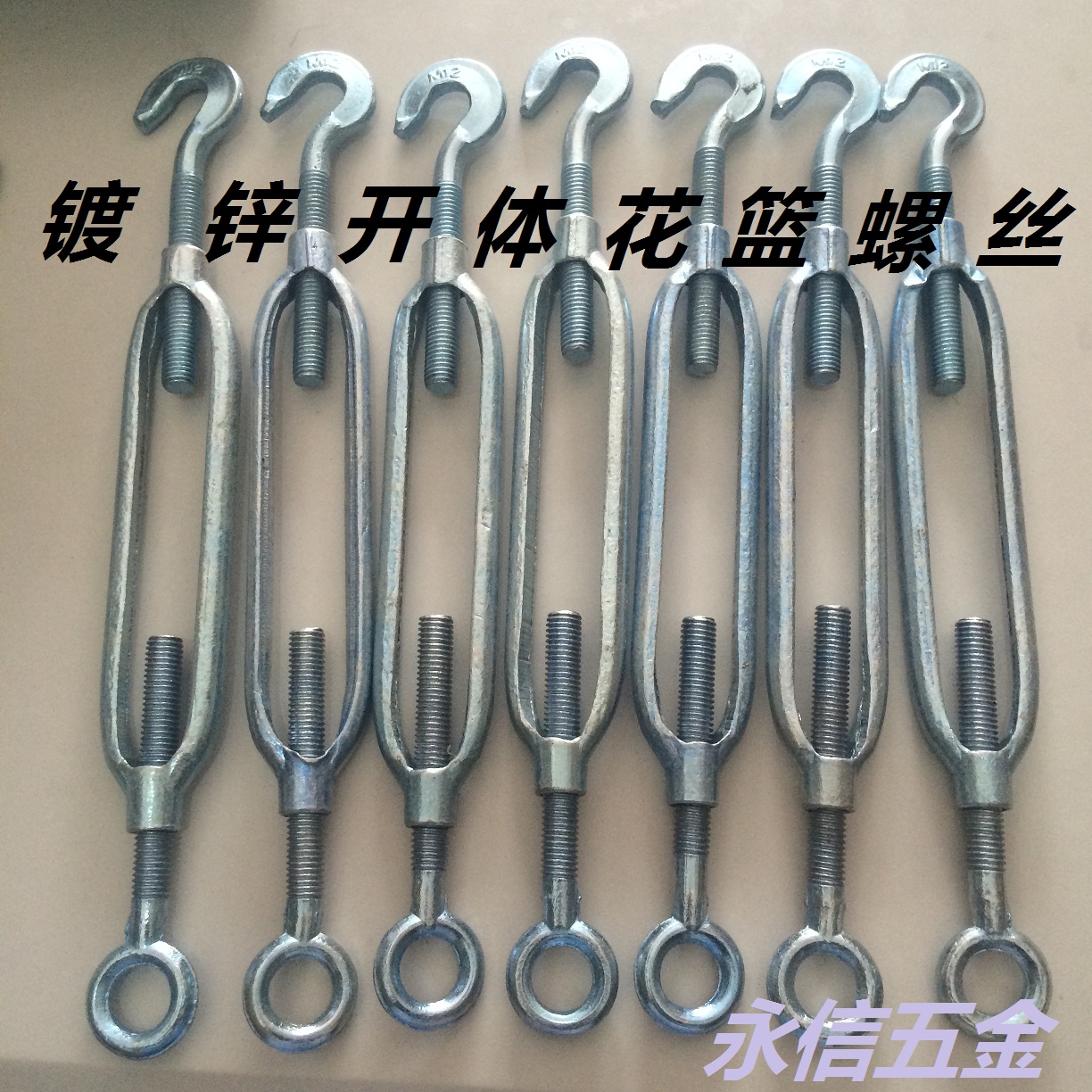 Galvanized flower basket screw flower basket screw open body flower and blue wire rope pull-tight machine national standard open body flower basket M20