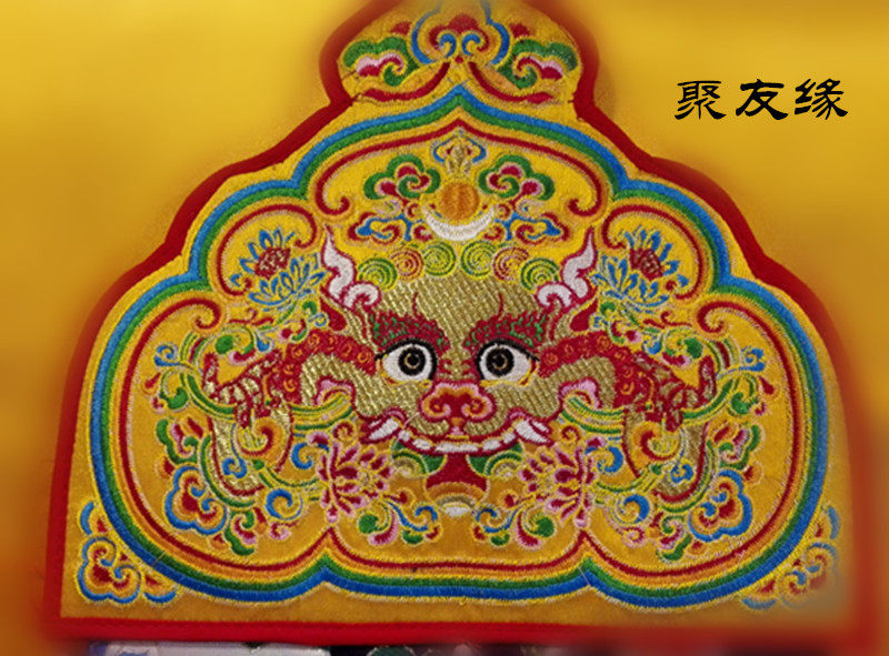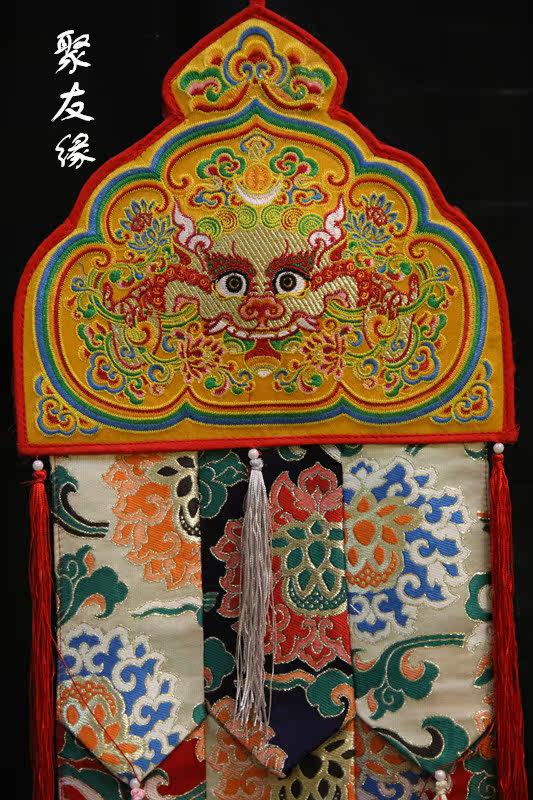Tibetan process embroidered Kirin Tibetan fabric golden lotus flower flag condition price