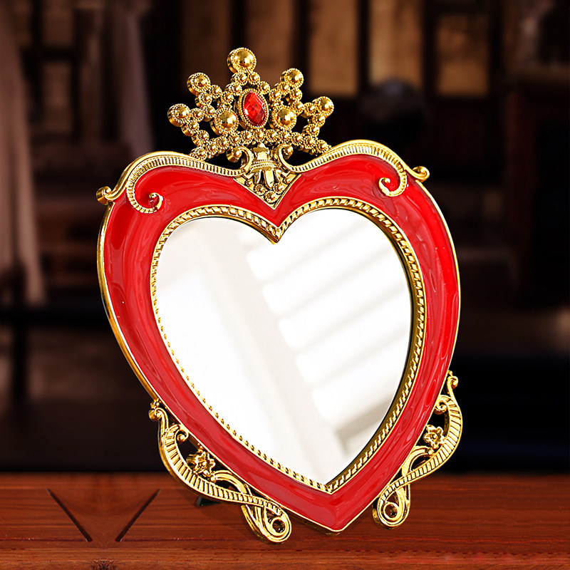 Heart-shaped crown mirror (single) round crown mirror (single) double-sided mirror upright plus base (single)