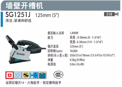 Original Japanese Makita Wall slotting machine SG1251J concrete cutting double saw blade Stone machine 5 inch 125MM