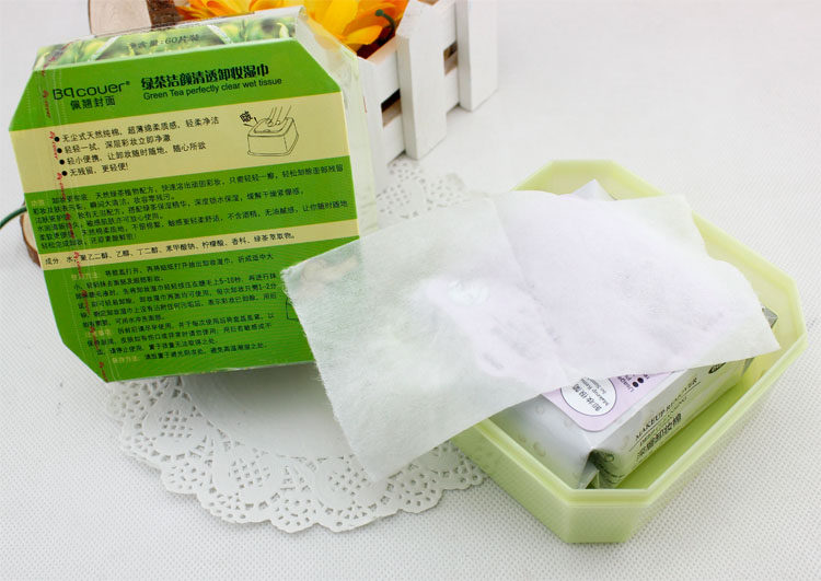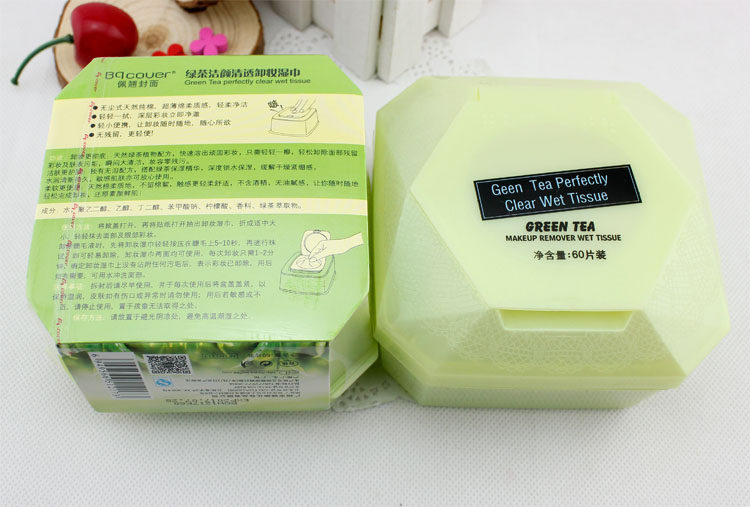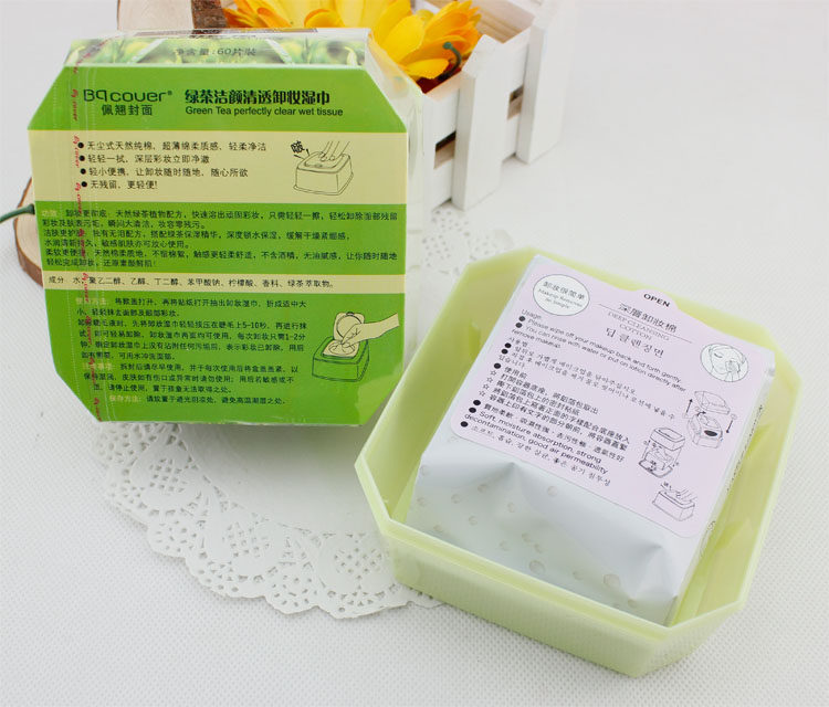 BQ cover Peiqiao cover green tea cleansing clear makeup remover towel removes makeup 60 pumps H1217