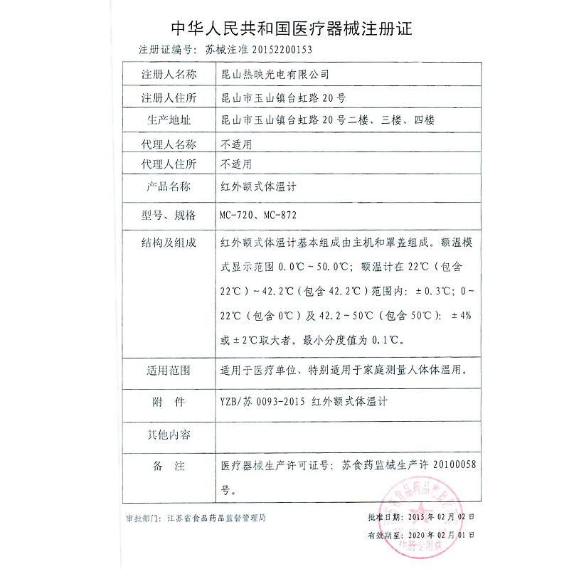 YZB Su 0093-2015 Infrared forehead thermometer