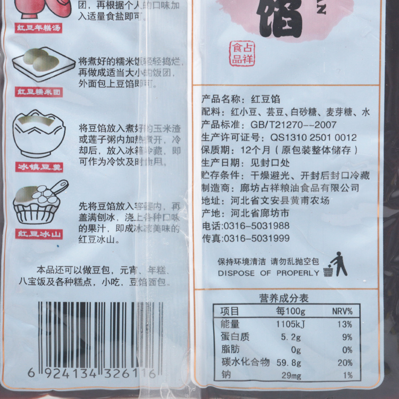 Red Bean Filling Purple Crystal 300g Red Bean glutinous rice Glutinous Bean Sand Bag rice cake Glutinous Rice Cake Soup Round End Afternoon Zongzi stuffed with filling