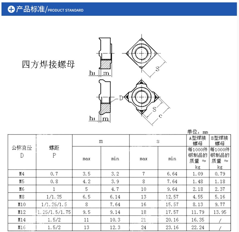 Special price four-way welding nut carbon steel natural color four-corner welding screw cap spot welding M4M5M6M8M10M12