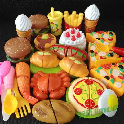 Hot dog pizza 12 pieces sushi salmon 13 pieces hamburger fries 13 pieces cut fruit basket peeling Le cut vegetable basket peeling music home wine steamer toy