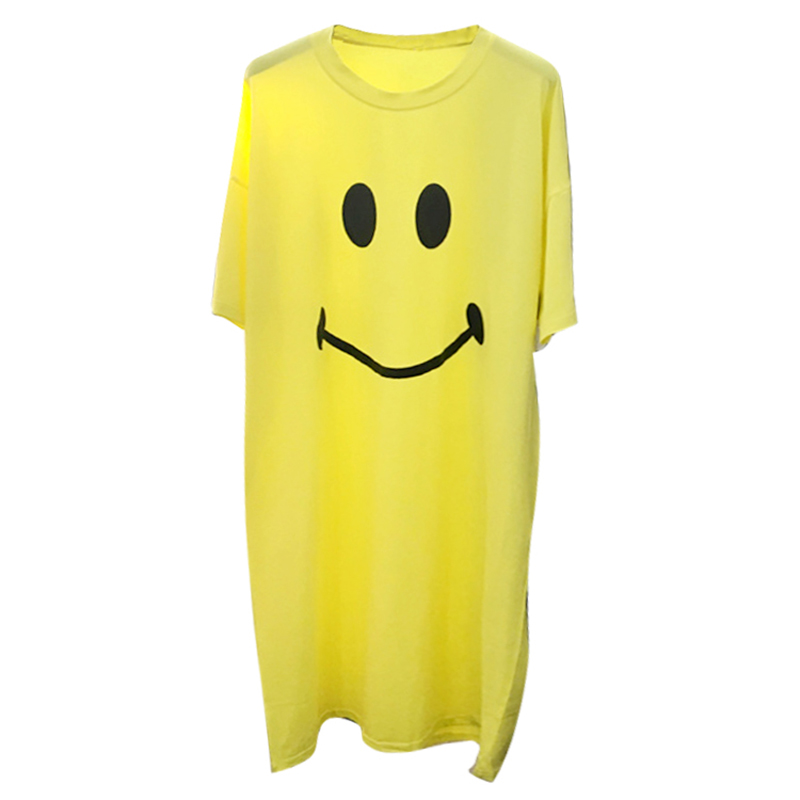 Smiley Face Sleeping Dress Long Version Woman Short Sleeve Pure Cotton Triple ten The same family Resider in spring and autumn pregnant woman big size for cute summer pyjamas