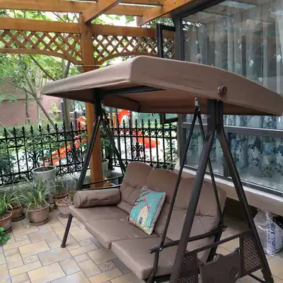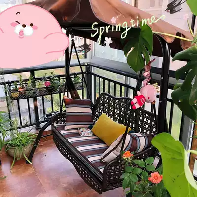 Outdoor swing courtyard children's rocking chair Net red into double wrought iron hanging basket rattan chair household balcony outdoor Qianqiu