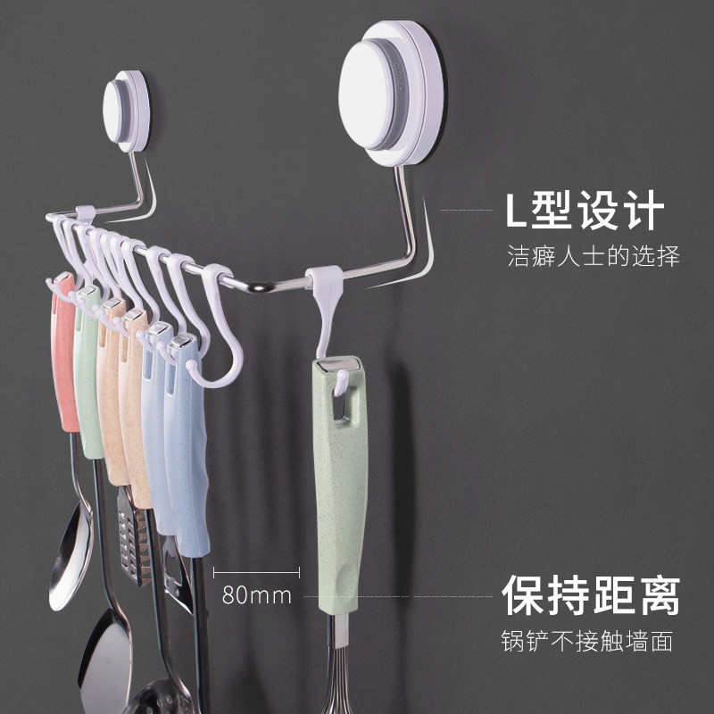Suction cup nail-free hole hook Kitchen row hook Stainless steel powder room incognito adhesive hook Wall waterproof S hook