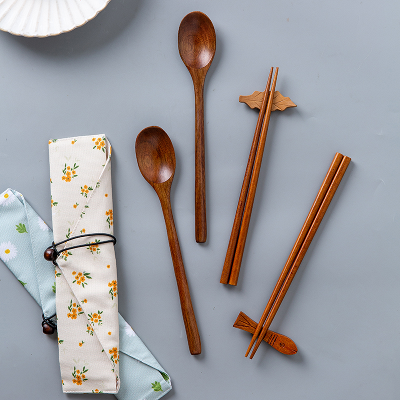 Modern housewife wooden chopsticks spoon set Two-piece spoon fork soup spoon Wooden spoon Japanese household wooden rice spoon