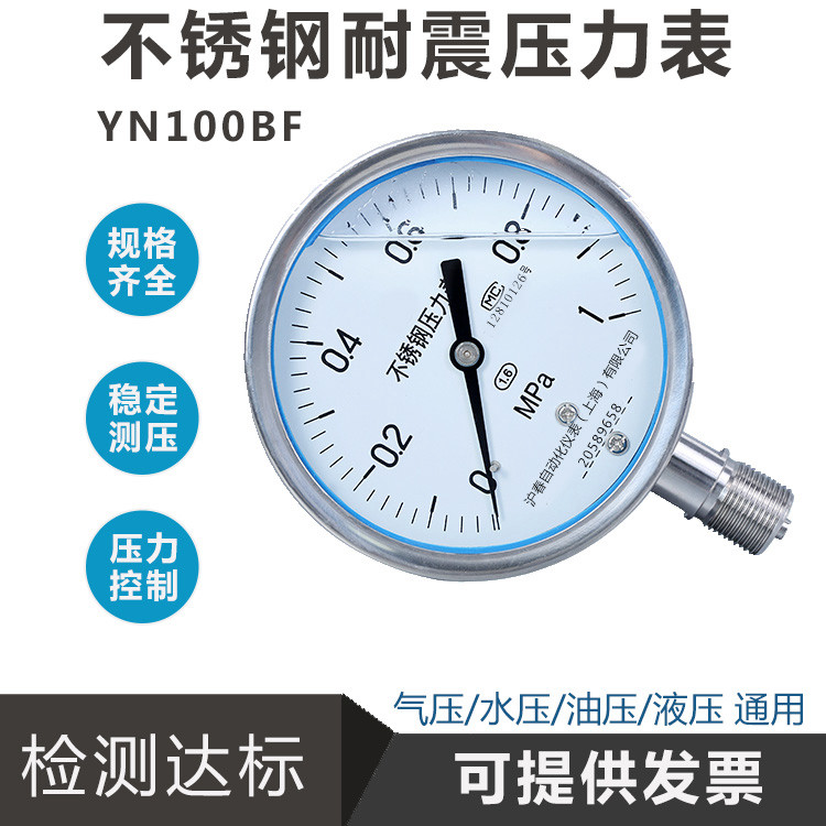 304 stainless steel shock-resistant pressure gauge YN100BF acid and alkali anti-corrosion pressure steam water pressure gauge Oil pressure gauge Vacuum