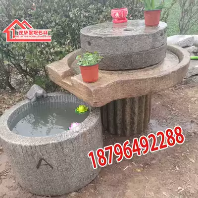 Old fish tank Big stone mill set Old mill stone tank Medium stone mill old fish tank set diameter 40 high 24 copper money grass flower pot