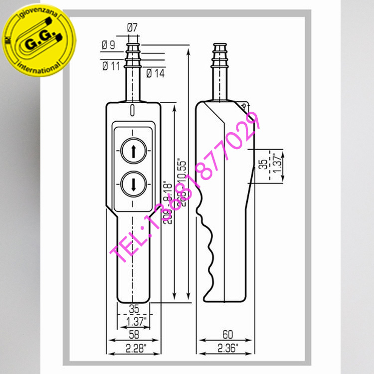 2-hole Italian GG button box flashlight door P02 1 P02D2 hanging cantilever handle hand-held
