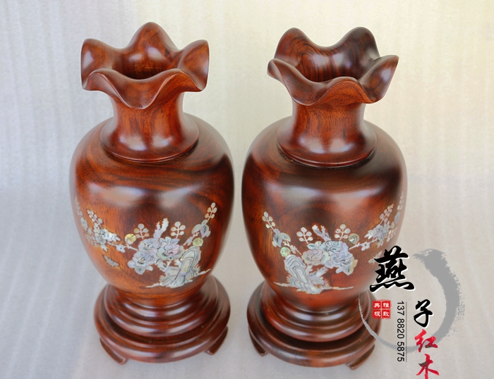 Vietnam Mahogany Craft Gift decoration iron Rosewood inlaid shell vase Chinese style classical Vase ornaments mahogany home furnishings
