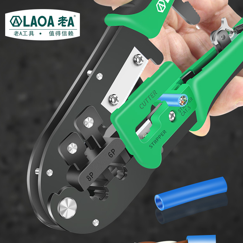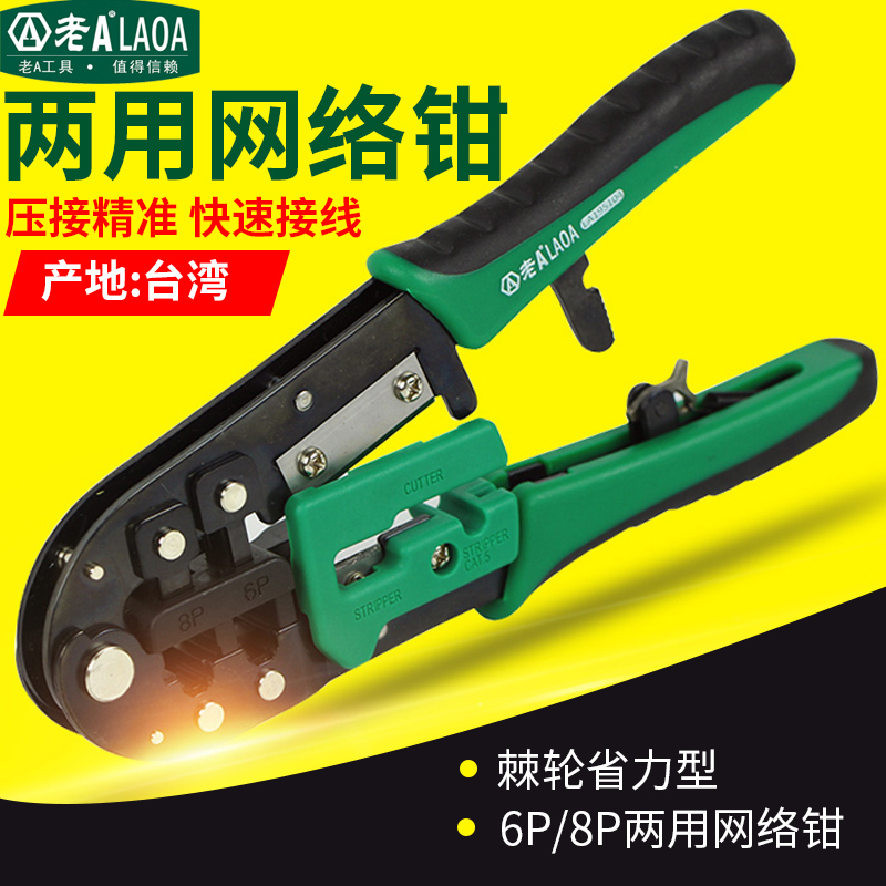 Old A Taiwan imported ratchet labor-saving Internet pliers Exfoliating routes pressed for crystal heads 6 8P Dual-purpose press pliers